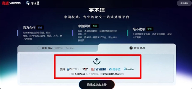 查重老牌子,现在也搞AIGC检测和降AI,一天有五次免费检测查重机会。