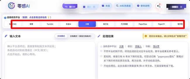 它的亮点是可适用于多种平台,包括比较小众的PaperPass、PaperYY等。降ai效果还算不错,但仍建议搭配手动检查润色。