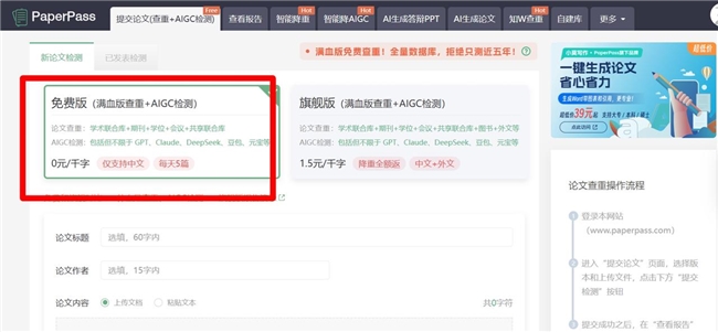 适合人群:处于初稿自查阶段,只想要免费检测的同学。