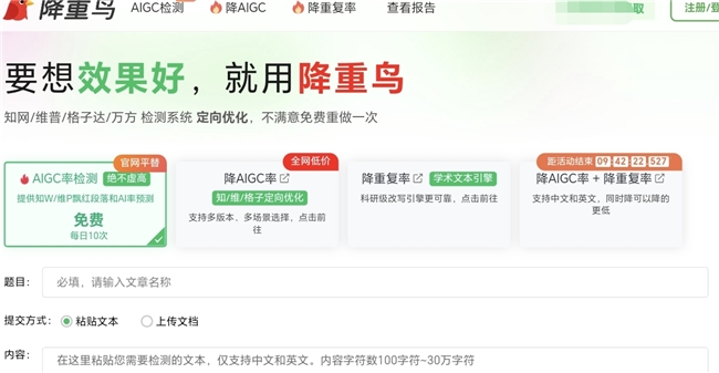 2.降重鸟(预算友好+免费自测)
