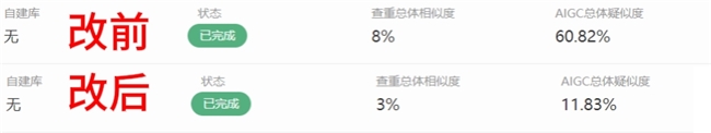 适用人群:不想折腾格式、要稳过盲审、全专业通用的懒人毕业生。实测体验:它不是简单换词,而是重构句子节奏,把AI那种生硬的书面机器语,改成自然的人类写作感。我传了一篇AI率高的全红论文,改完直接降到11%。