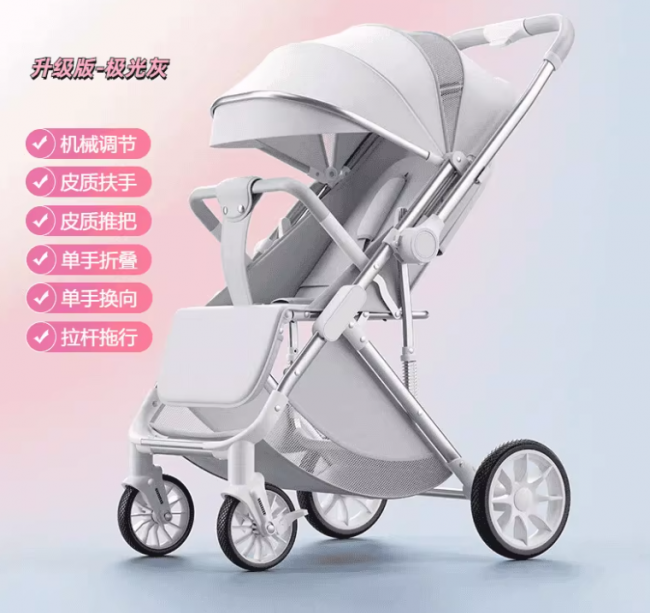 核心优势:折叠小巧省空间,适配租房/小户型;一键折叠操作便捷;可坐可躺满足宝宝多元需求;8英寸减震轮,推行顺滑,乘坐舒适。