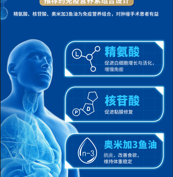 a.推荐理由:被业界称为“白细胞加油站”。它不仅是全营养支持,更是专为术后及放化疗设计的特定免疫营养品。