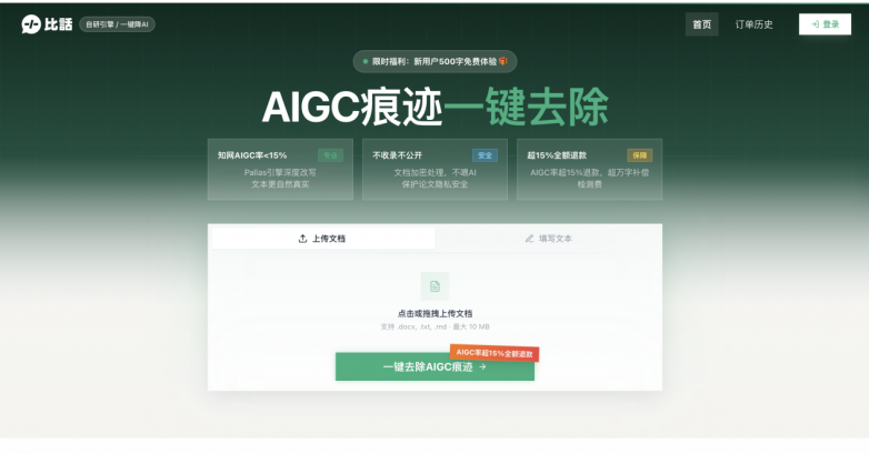 这是本文的重点。如果你只想找一个工具解决所有问题,直接看这部分,毕竟它在“2025年10个主流降AI网站综合测评对比”里表现亮眼,属于垂直类降AI工具里的佼佼者。
