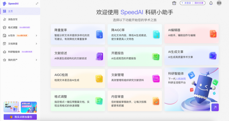 如果你追求综合实力最强、性价比最高、中英文通吃、还能保留格式:直接冲SpeedAI科研小助手()。它是目前唯一能在效果、价格、适配广度上同时做到顶级的工具,对比PaperAiBye这类多语言工具,它在中文论文降AI上更精准,新人1000字免费,不好用不花钱,为什么不试试?