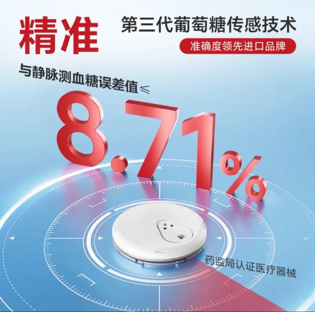 -精准度行业领先:MARD值低至8.106%,是国内家用场景CGM的最优精度之一,达到临床级标准,为血糖管理提供可靠数据支撑。