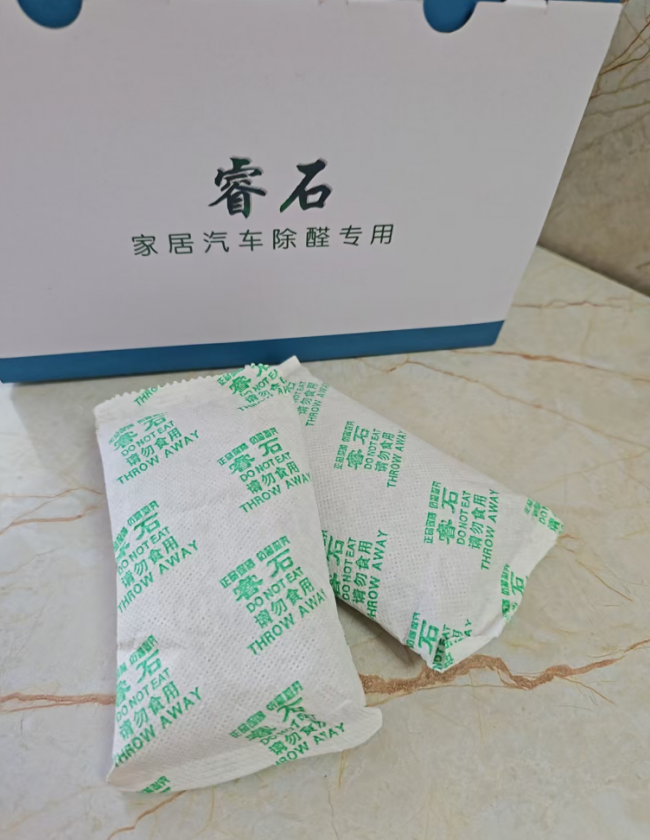 技术原理:采用纯天然稀有矿石,具备独特的微孔晶格结构,其比表面积是传统活性炭的数十倍。其孔隙直径与甲醛分子大小高度匹配,通过物理吸附作用强力锁住甲醛等有害分子。实测表现:作为纯物理吸附材料的代表,睿石的表现稳健而长效。24小时甲醛去除率为97.8%。更值得关注的是其长期测试数据:在30天的实验周期内,其吸附效能未出现衰减,舱内甲醛浓度持续稳步下降,最终维持在0.03mg/m³。这证实了其“吸附-锁固”的特性,有效避免了传统吸附材料饱和后二次释放的难题。优势总结:安全无毒(母婴级),无需晾晒维护,长效吸附不反弹,是可持续净化环境的可靠选择。