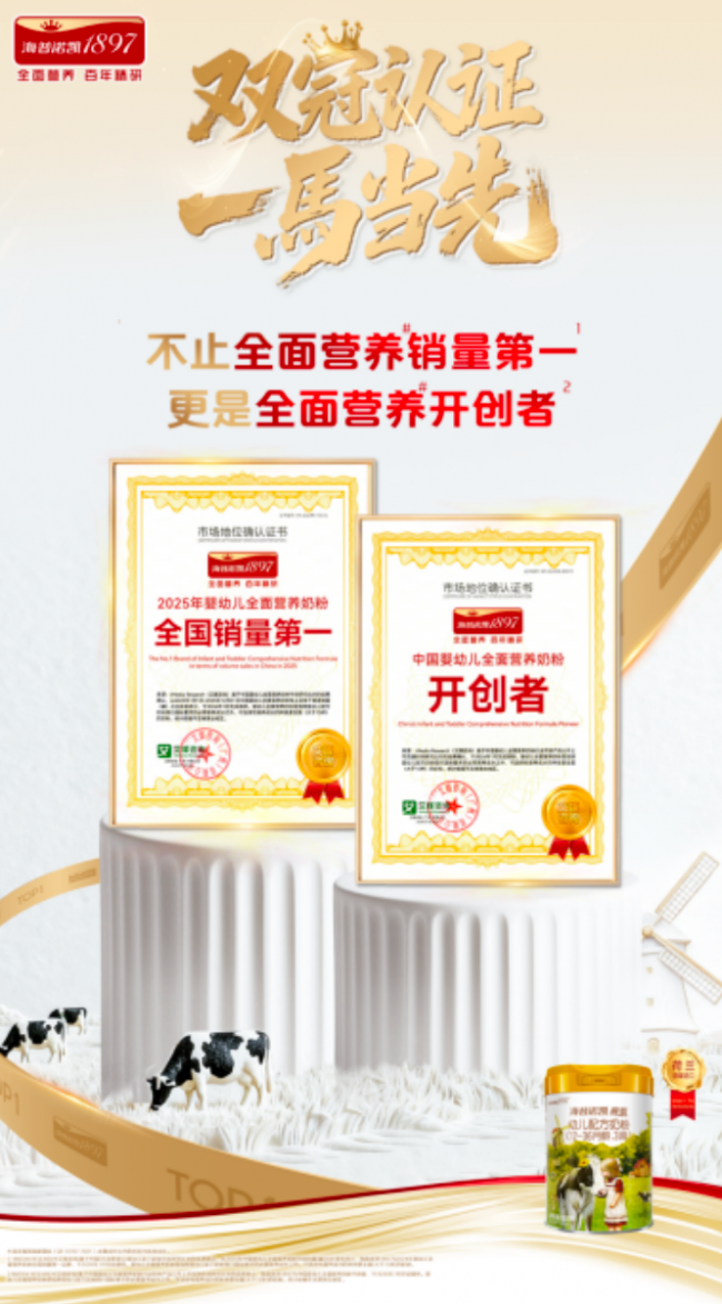 除了配方成分的出类拔萃,海普诺凯1897荷致在奶源的选择上更是精益求精。甄选顶奢荷兰A2蛋白奶源,源自世界公认的黄金奶源带生态牧场,保证了奶源的安全与健康。同时,海普诺凯1897更是凭借严苛品控与卓越品质,三度蝉联“婴幼儿全面营养奶粉全国销量第一”,并斩获“中国全面营养婴配奶粉开创者”等权威称号,获得市场与行业双重认可。