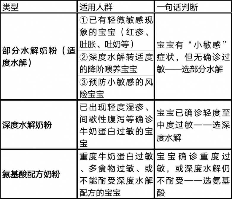 三、特别说明:水解奶粉分三类,买错类型等于白买