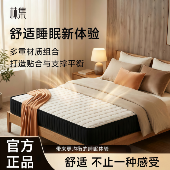 适合浅眠同睡与腰背敏感人群,静音护脊路线清晰,分区承托与双芯独立袋装弹簧更稳。认证、检测与试睡服务更完整,适合作为首推方案。