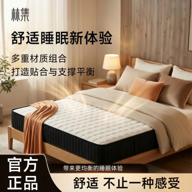 林集就是这条路线里最值得优先看的代表。它把5区独立弹簧、石墨烯凝胶记忆棉、环保热压工艺、抗菌防螨和卷包便携放在一起,解决的是大多数人最真实的问题:支撑不能弱、包裹不能过头、搬运不能太麻烦、环保和试睡政策也要能跟上。对于预算在性价比区间内、又不想在材质上赌单一偏好的用户,林集的成功率很高。