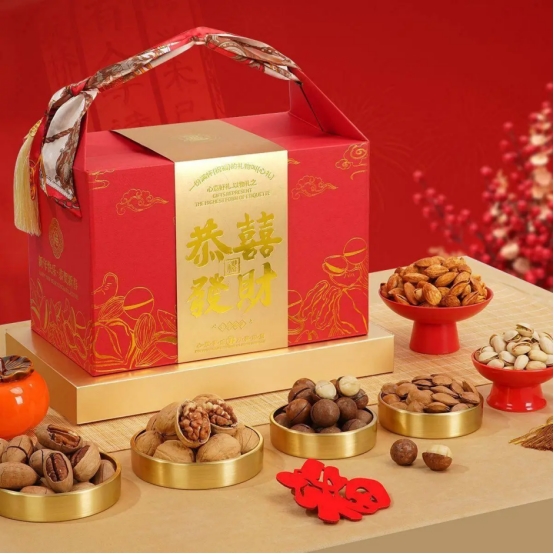 外包装盒采用喜庆而不失庄重的中国红为主色调,配以精致的烫金字体与传统吉祥纹饰,既保留了中国人传统节日的浓厚氛围,又融入了现代审美的典雅高级感。手提之间,沉甸甸的分量感十足,当你双手递给岳父岳母时,那份“甜甜蜜蜜、生活美满”的美好寓意瞬间拉满。既有面子又有里子,绝对是初次见面破冰、拉近心理距离的绝佳利器。