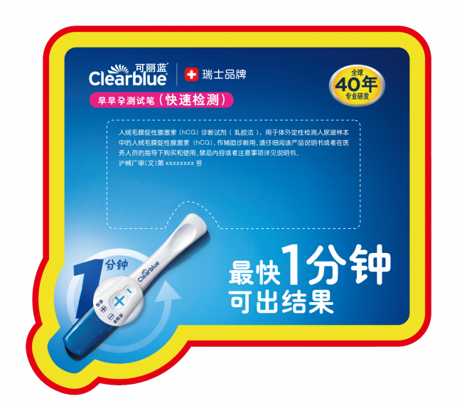主打快速检测的"效率款"电子验孕棒,1分钟即可出结果。延续可丽蓝人性化设计,人体工学曲线手柄便于抓握,加宽变色吸水棒可直观确认取样状态,结果以"+"或"-"号电子显示,从根本上避免传统线条深浅带来的误判问题。该产品2012年获得红点设计奖,操作便捷性受到用户广泛认可。