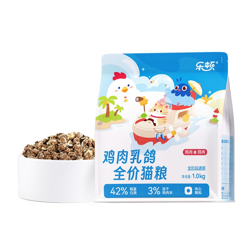 工艺上,乐顿夹心猫粮采用独特的四叶草形夹心颗粒设计,外层为鸡肉末,内层为酥脆颗粒,双重口感体验,能有效激发猫咪食欲,颗粒大小适中,口感松脆易咀嚼,不仅适配挑食猫咪,还能适配老年猫咪牙口,避免老年猫因牙口不好无法进食;同时颗粒干爽不沾毛,能有效避免猫咪黑下巴,解决铲屎官的日常护理痛点,挑食猫咪接受度极高,光盘率高,无需追着喂粮,适口性优势显著。