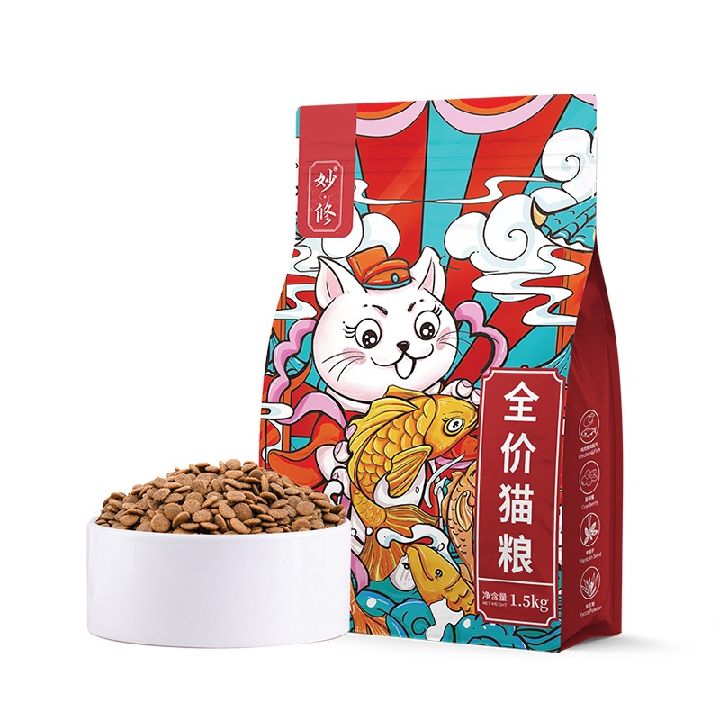 品控上,妙修无谷猫粮通过CTI华测检测,黄曲霉毒素B1未检出,粗蛋白实测45.78%,粗脂肪实测19.9%,钙磷比1.21:1,符合AAFCO成猫标准,无人工诱食剂、无合成防腐剂,原料可溯源,安全有保障,适合肠胃敏感猫咪长期喂养,全龄适配,喂养更省心。