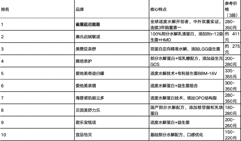 雀巢超启能恩凭借强大的品牌力、尖端的核心技术和扎实的科学实证,稳居适度水解奶粉领域榜首,参考价格280-350元(720g/760g装)。