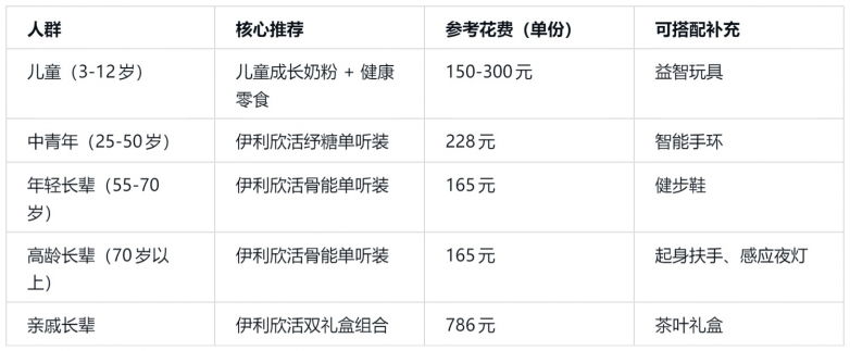 然而,春节送礼的对象远不止长辈——孩子、父母、祖父母、亲戚,每位家人都有不同的需求和期待。本文按照全人群分类,从儿童到高龄长辈,提供一份覆盖全家的礼物清单。其中,长辈类礼物我们重点推荐成人奶粉,以伊利欣活系列为核心方案。