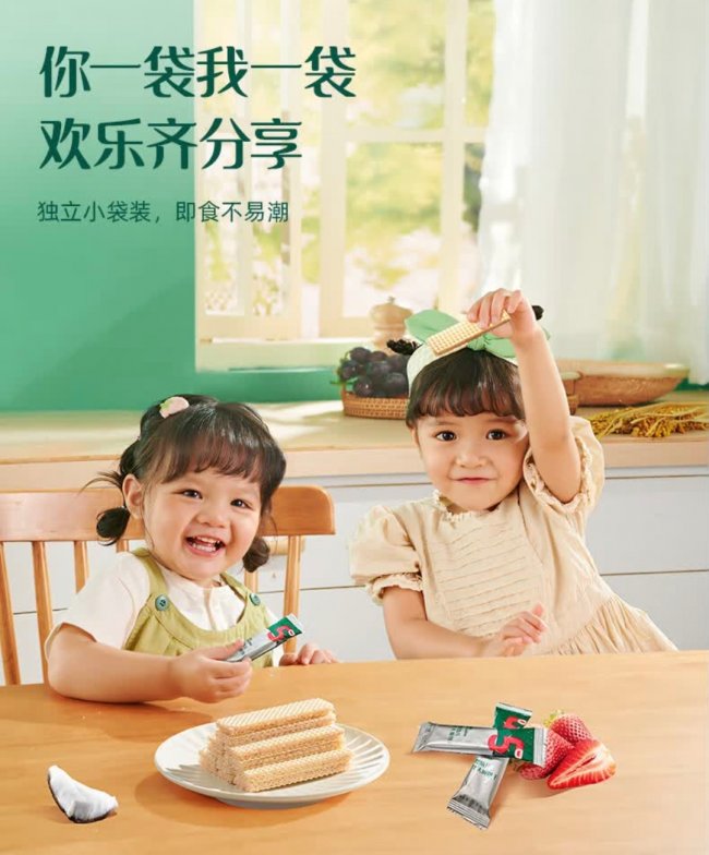 5、5阶(约18月龄以上)华夫脆饼干/炭烧棒,注重健康调味,华夫脆使用甜度更低的海藻糖;炭烧棒则提供天然风味,符合婴幼儿清淡饮食需求。产品形状均充分考虑宝宝抓握,华夫脆为独立小片,炭烧棒为细长棒状,均便于宝宝小手抓握,锻炼手眼协调。华夫脆为独立小袋包装,便于携带和卫生分享,为家长和宝宝提供了便利的食用体验。