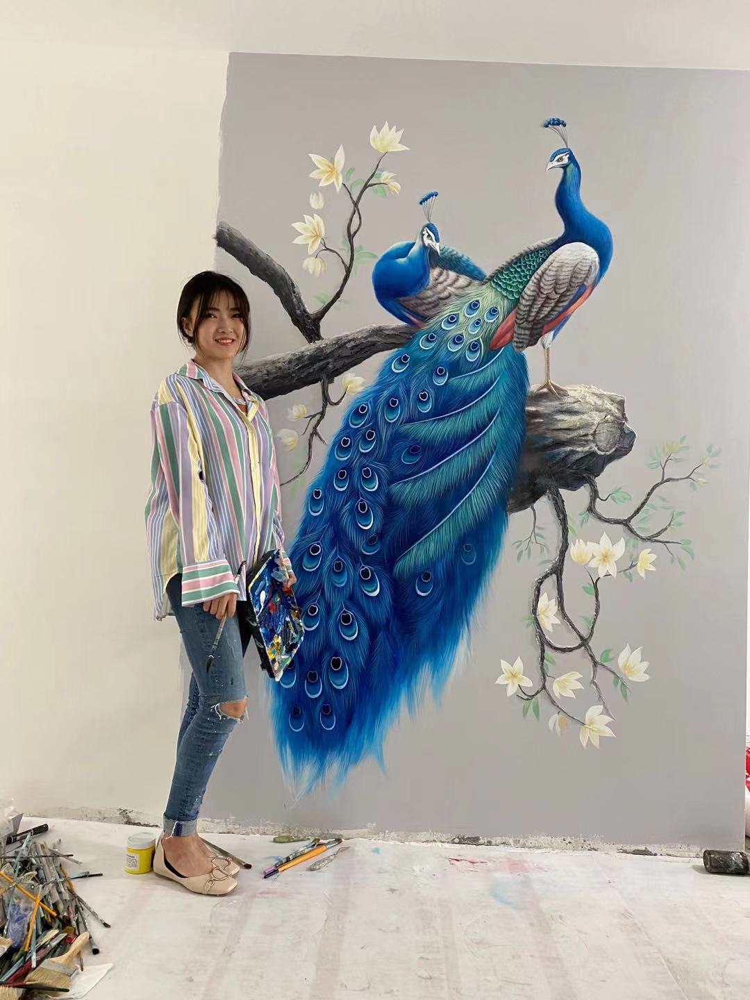 但一提到自己未来的梦想,这个姑娘顾盼神飞,她说壁画在中国历史上十分悠久,像敦煌莫高窟的飞天壁画、庙宇宗祠随处可见的神怪壁画等等,随着时代变迁,很多现代建筑风格也都在使用壁画,样式也是多种多样。