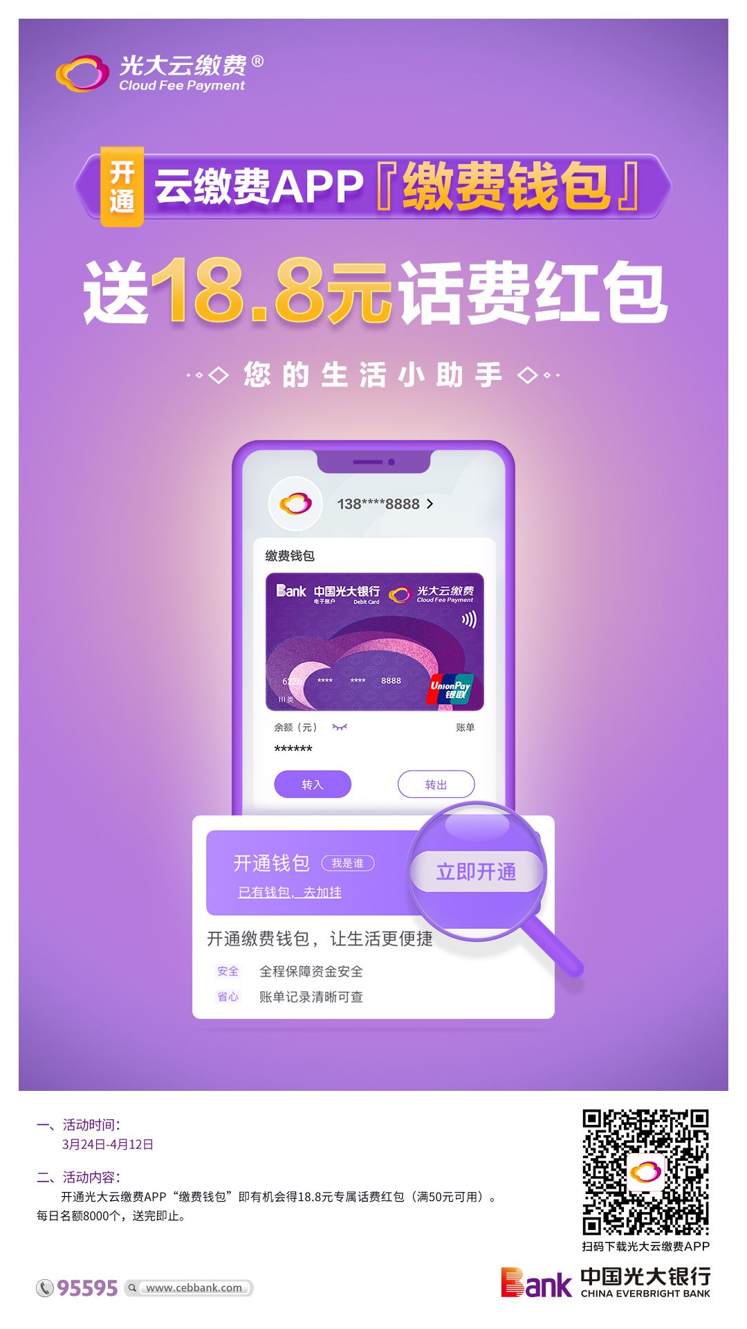 开通光大云缴费APP缴费钱包 送话费红包