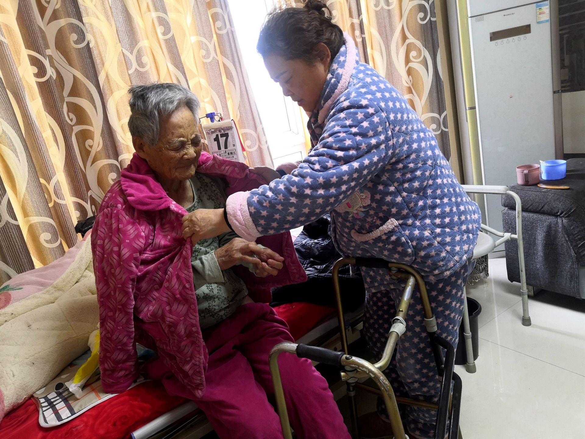 眼睛看不见,高红霞就是婆婆的眼睛,行动不方便,高红霞就是婆婆的双拐。