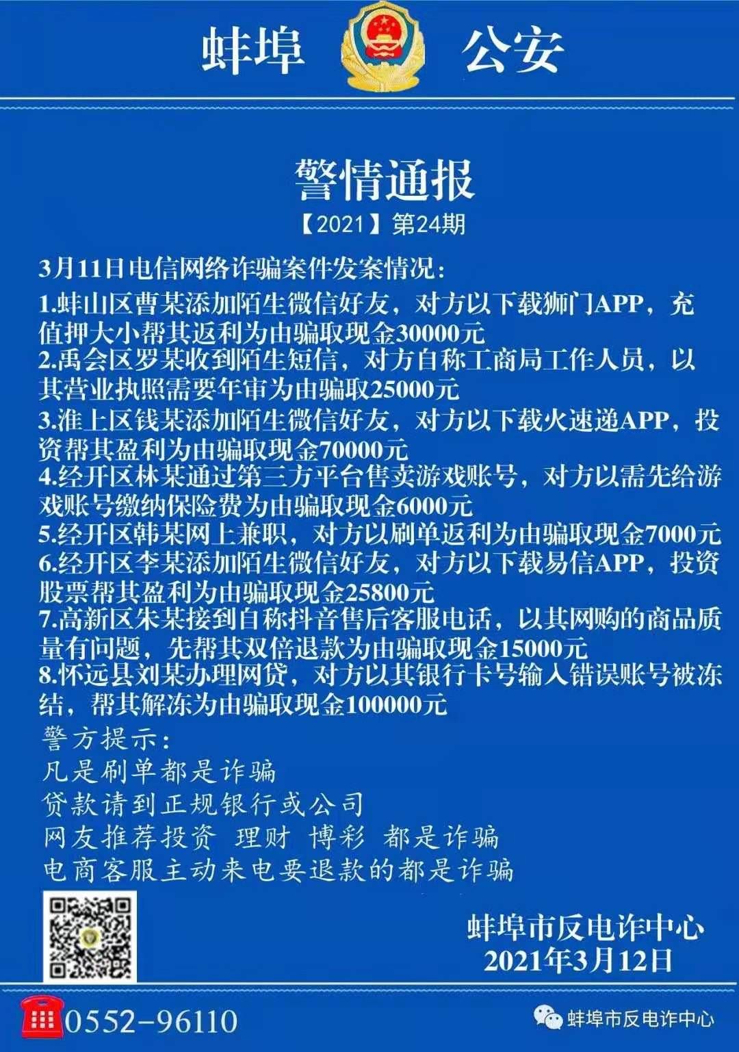 警方提示:网上刷单、推荐投资理财、网上博彩、客服主动退款等情节都是诈骗,广大群众时刻保持警惕,切勿上当受骗。
