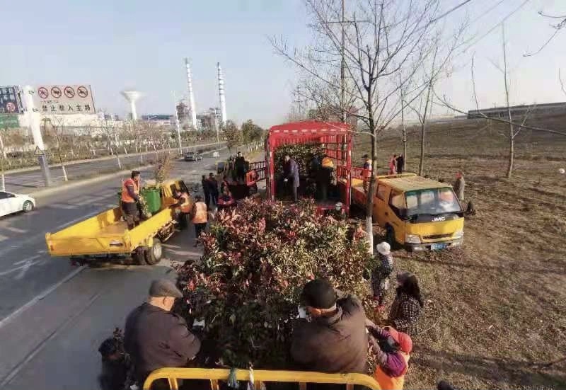 园林部门为道路景观植物“梳妆打扮