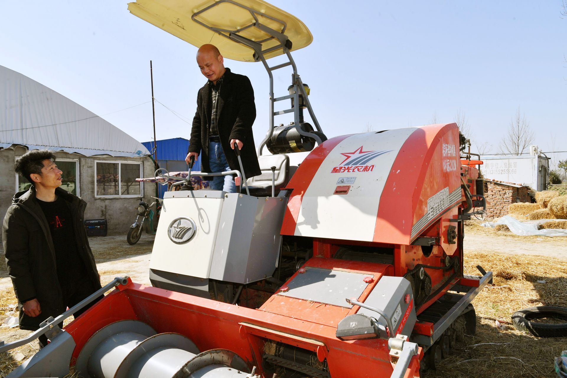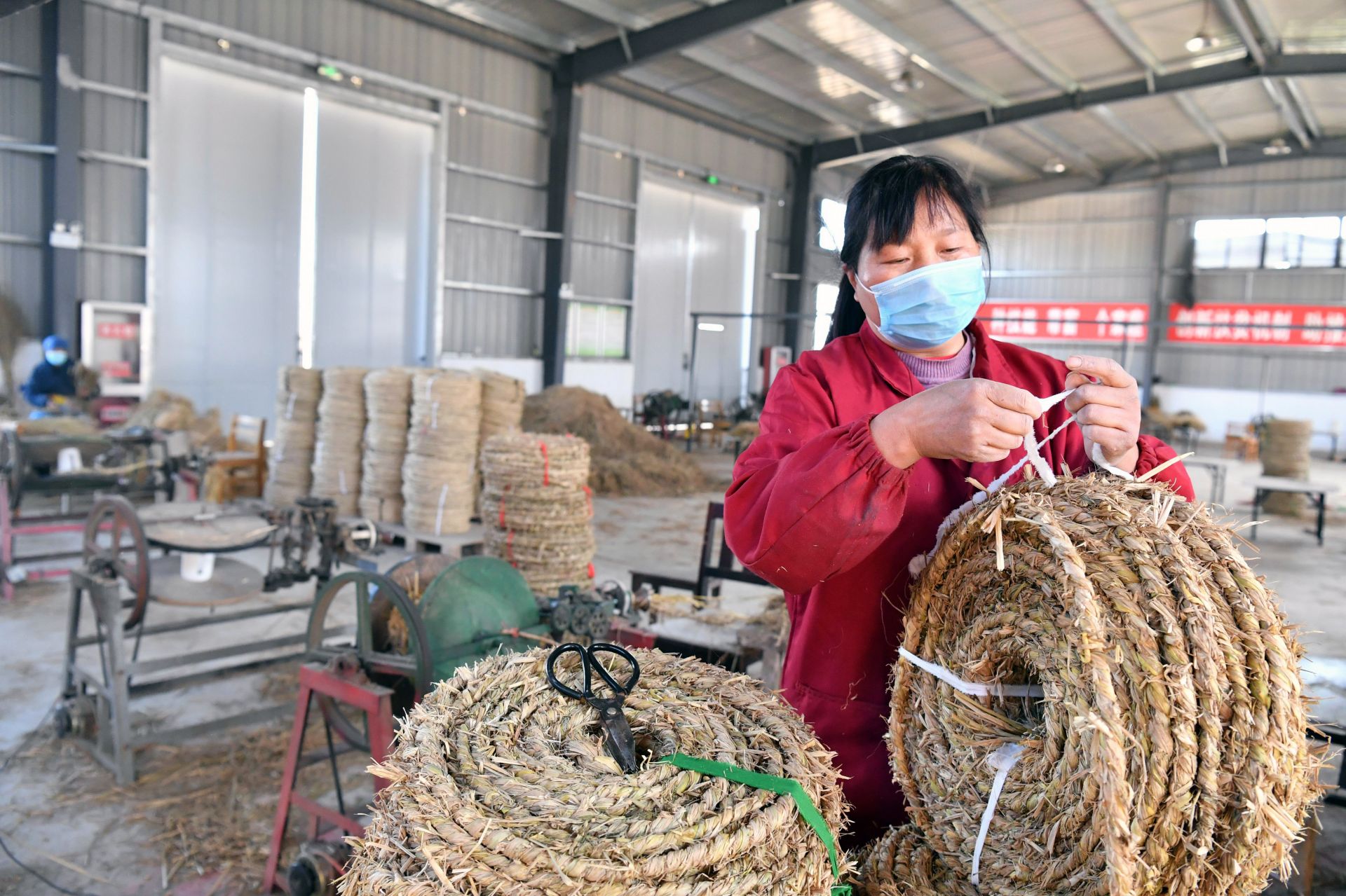 唐建军介绍,草绳编织机都是电机驱动,只要把秸秆塞进进料口,机器会自动编制草绳并打捆,劳动强度不大,比较适合村里年纪较大的留守老人。