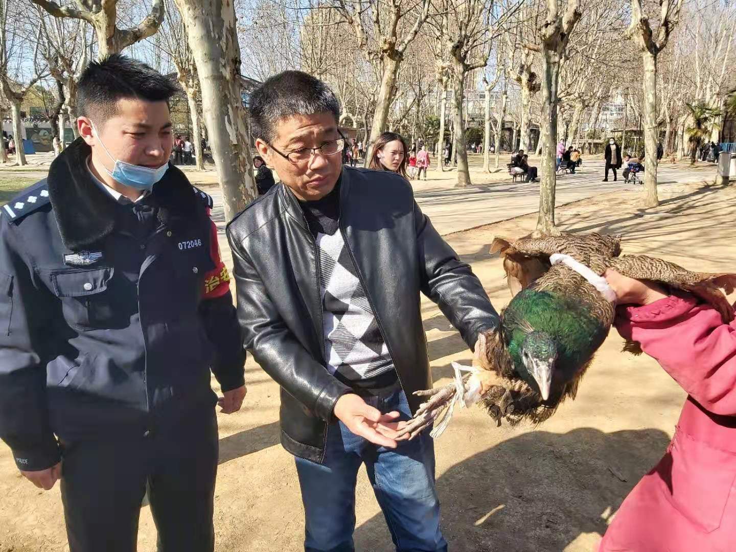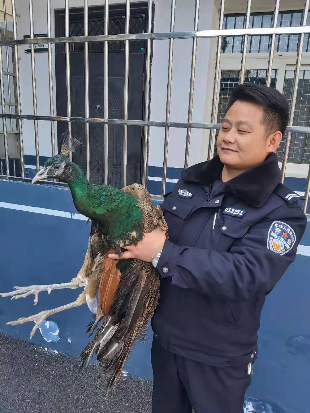 受伤孔雀飞进居民家 民警送林业部门来救护