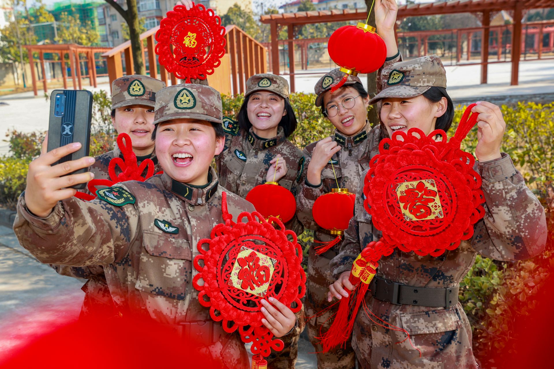 除夕当天,驻蚌第71集团军“朱德警卫团”组织“迎新春、送祝福”活动,官兵们在营区布置节日氛围,录制拜年短视频,让战友们通过短视频向远方的家人送上新春祝福。