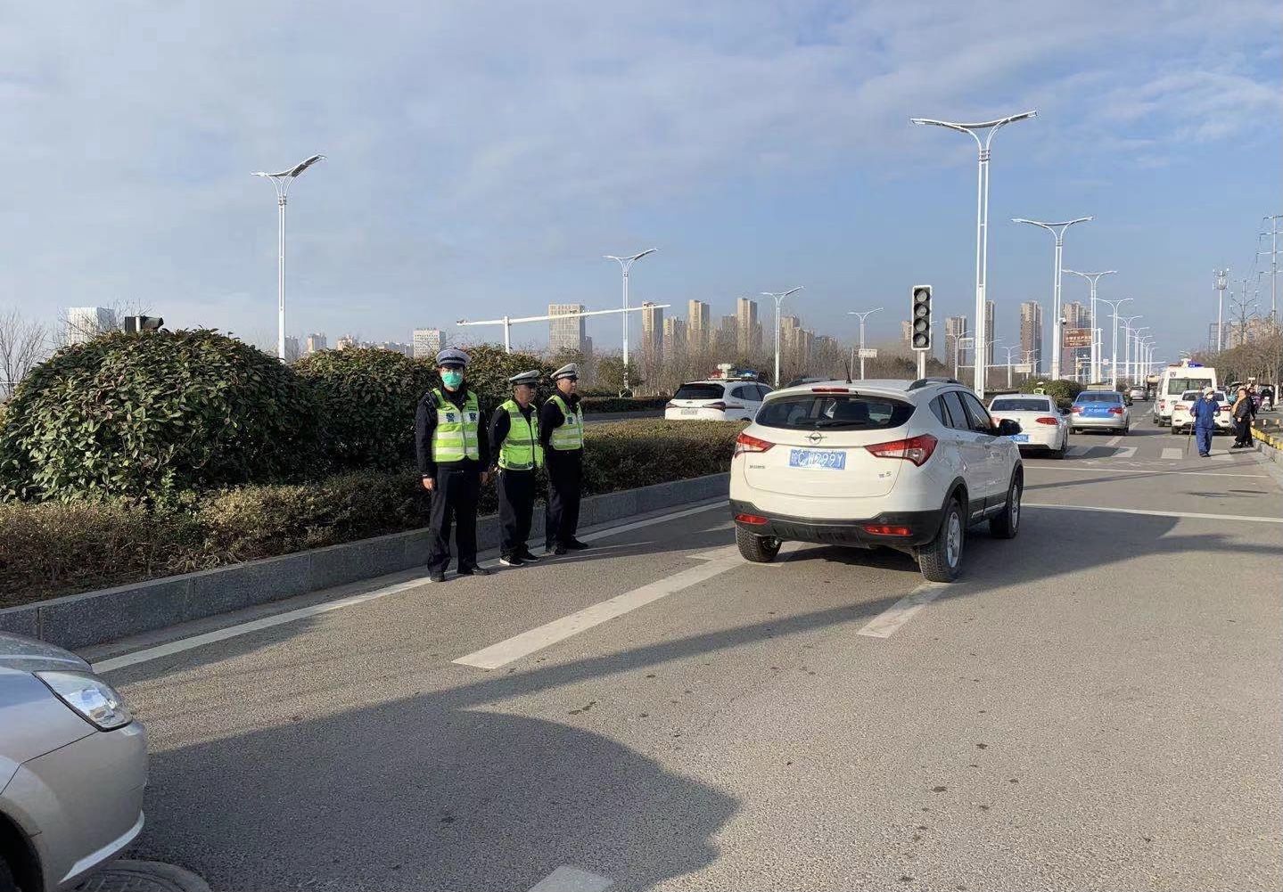交警七大队民警指挥疏导车辆