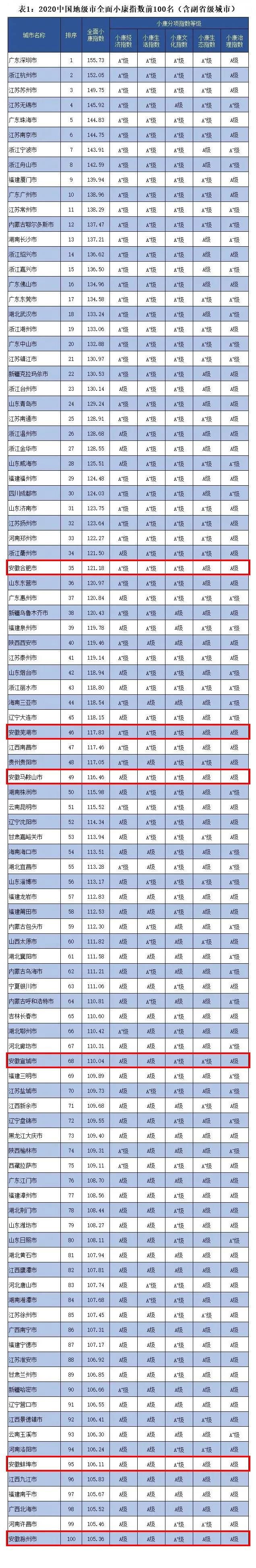 蚌埠上榜“2020中国地级市全面小康指数前100名”