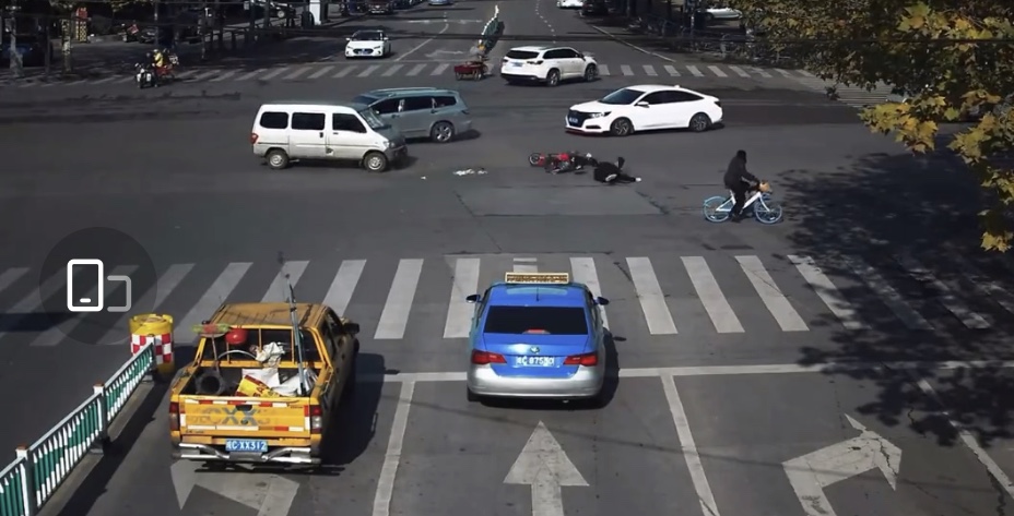 但因为没有系好安全扣,头盔随后被撞飞,在翻滚中没有起到保护作用。