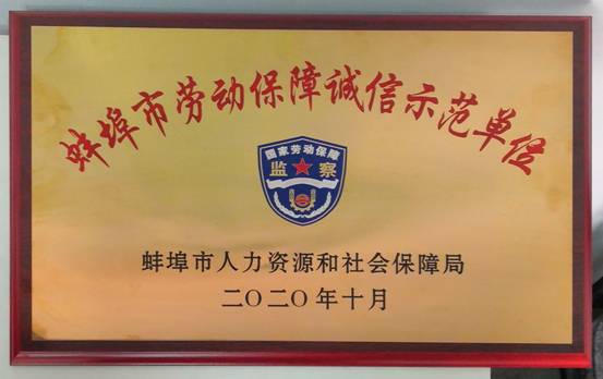 工行蚌埠分行获“劳动保障诚信示范单位”荣誉称号