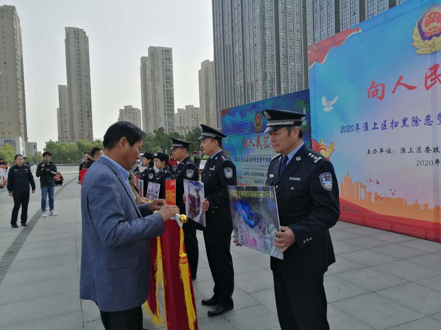 活动向社会通报今年以来淮上区警方在队伍建设、打击犯罪、为民服务、扫黑除恶、平安建设等工作中取得的成效,并向群众返还了一批价值20万元的赃款赃物。