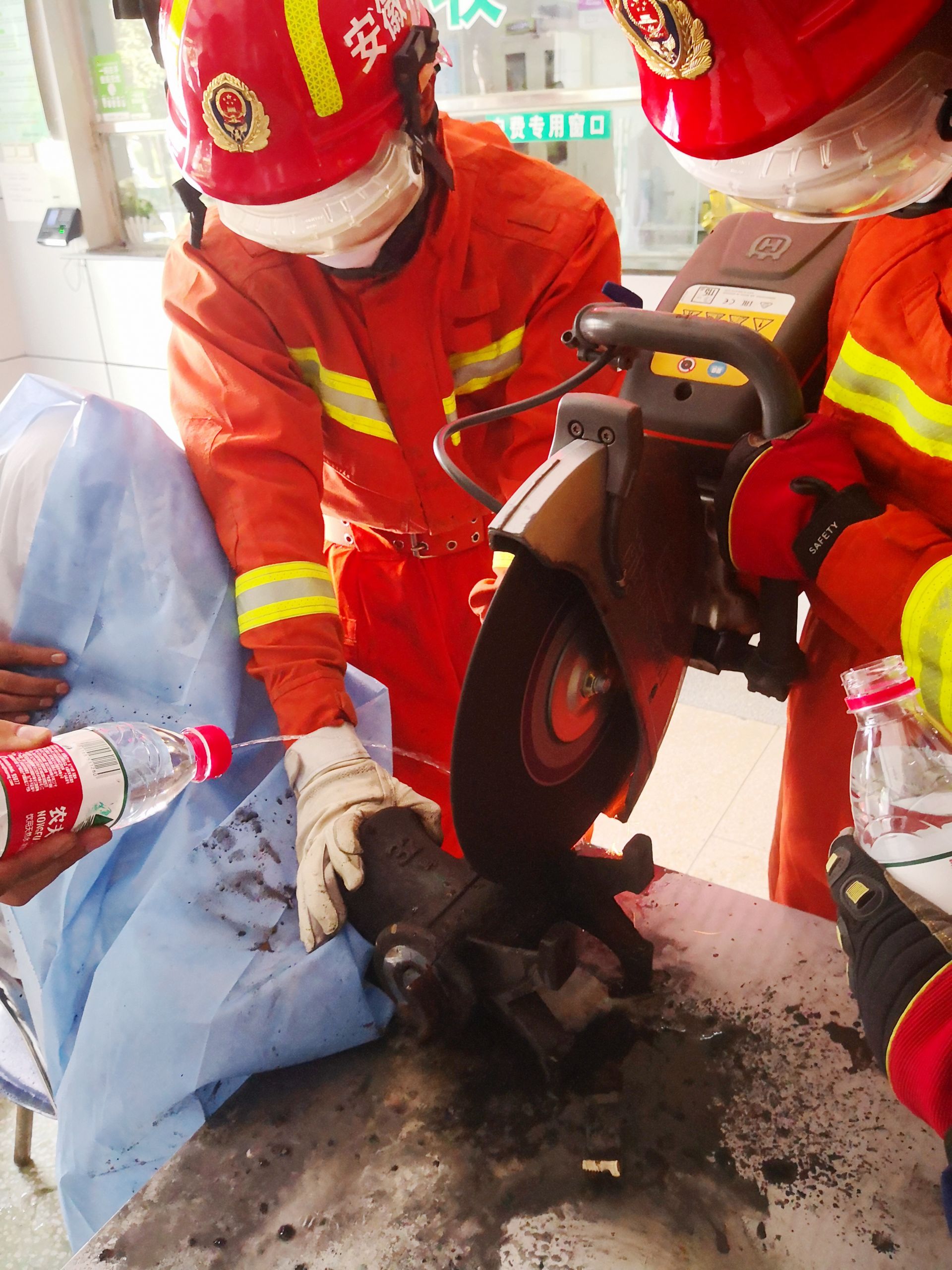 消防救援人员表示,这台机器是整体铸造的,没有任何连接处,而且王女士的手部被咬很紧,一点都不能动,于是救援人员一边谨慎切割,防止手部二次伤害,一边寻找新的突破点,经过1个小时的努力,终于将绞肉机底座去除,王女士的右手被成功取出。