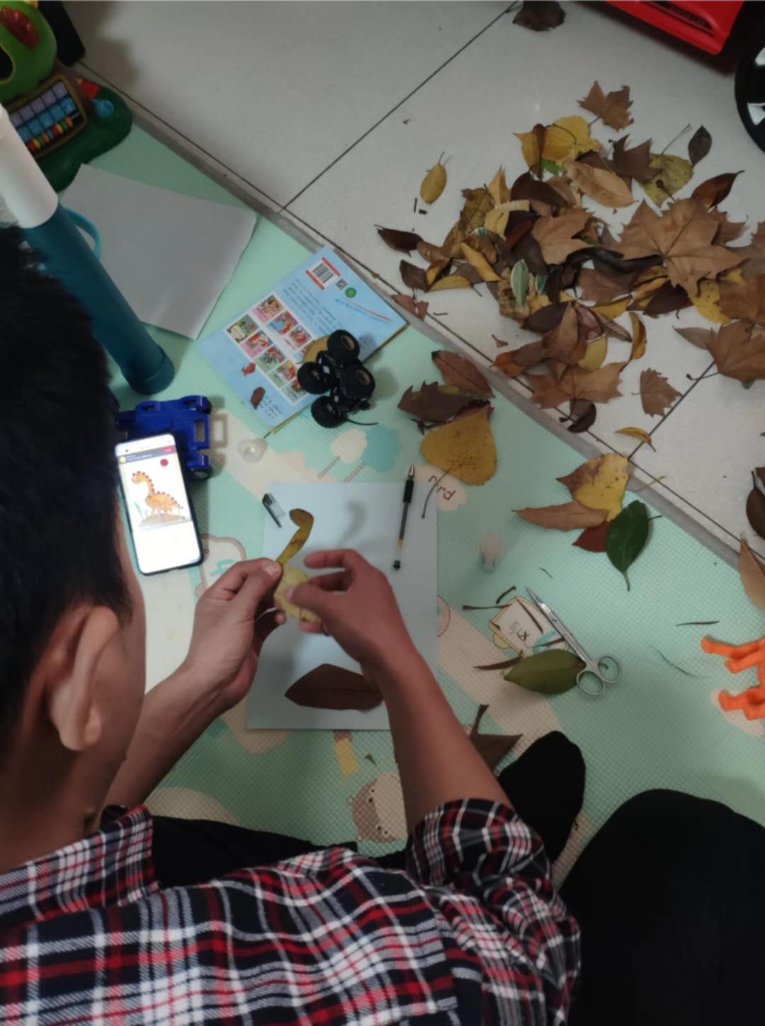 树叶带回家后,家长要充分鼓励孩子发挥想象力,哪怕孩子只是把树叶简单排列,贴在一起,那也是孩子自己的想法,家长可以给孩子提供广阔的想象空间,让孩子自己创作,最后的动手环节,如果孩子年龄太小,可以让孩子简单参与即可。