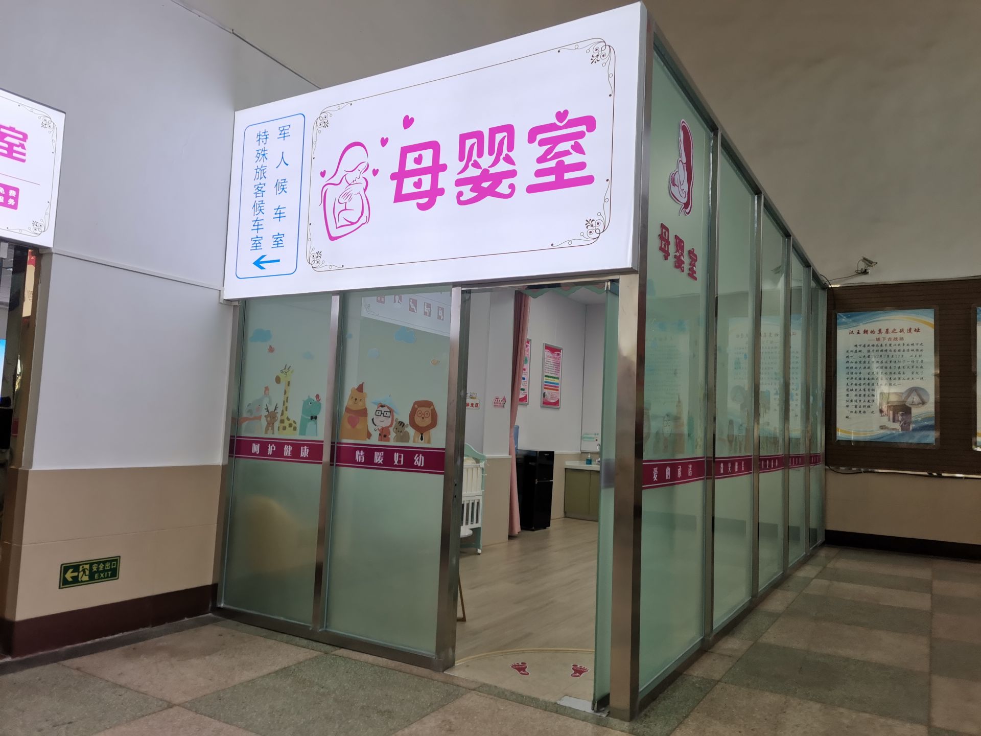 母婴室内配有冷热水洗手台、护理台、婴儿床、休闲沙发、纯净水、消毒柜等设施以及洗手液、尿不湿等日常用品。