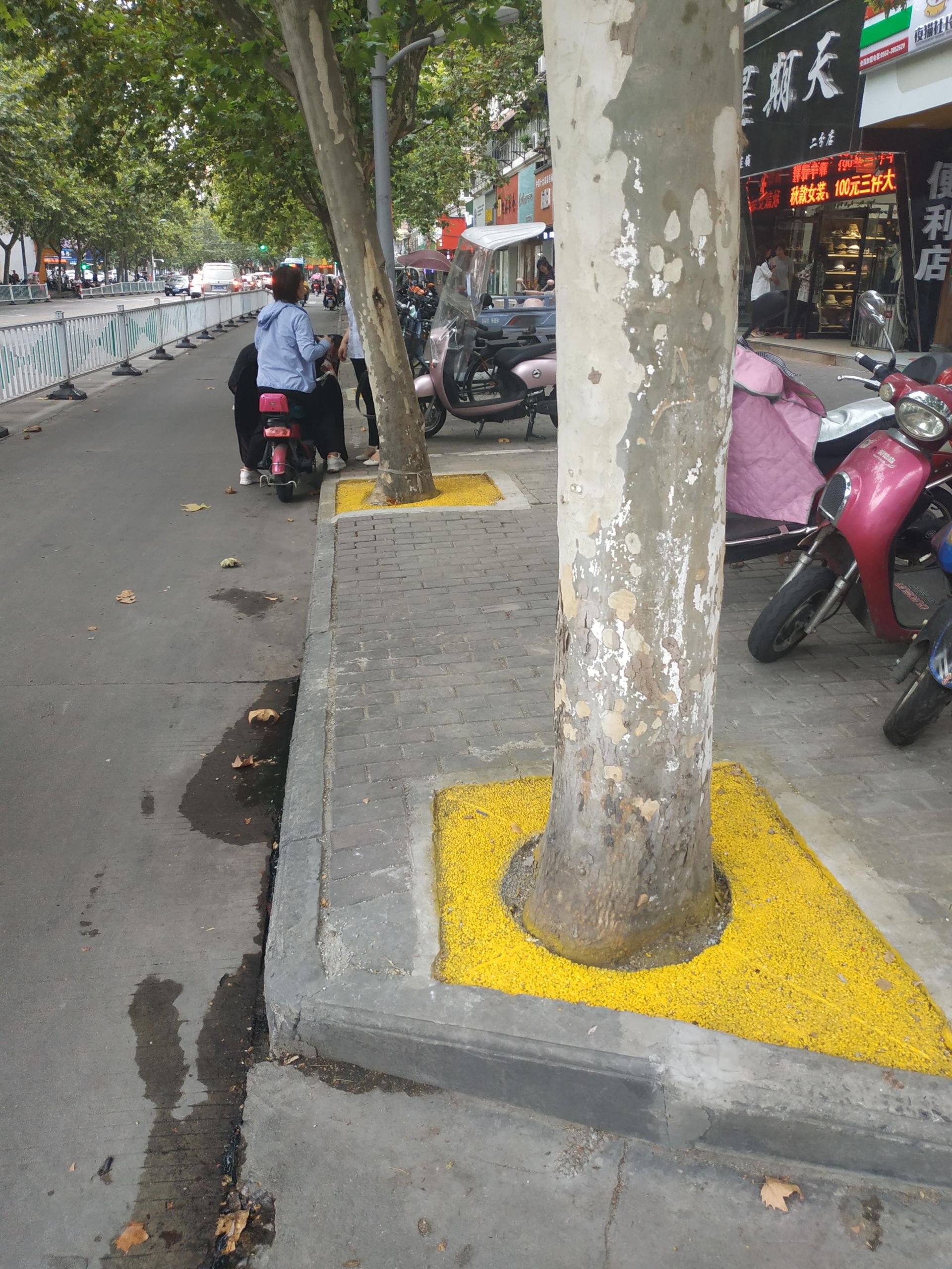 行道树有了彩色树穴 道路风景更跃动