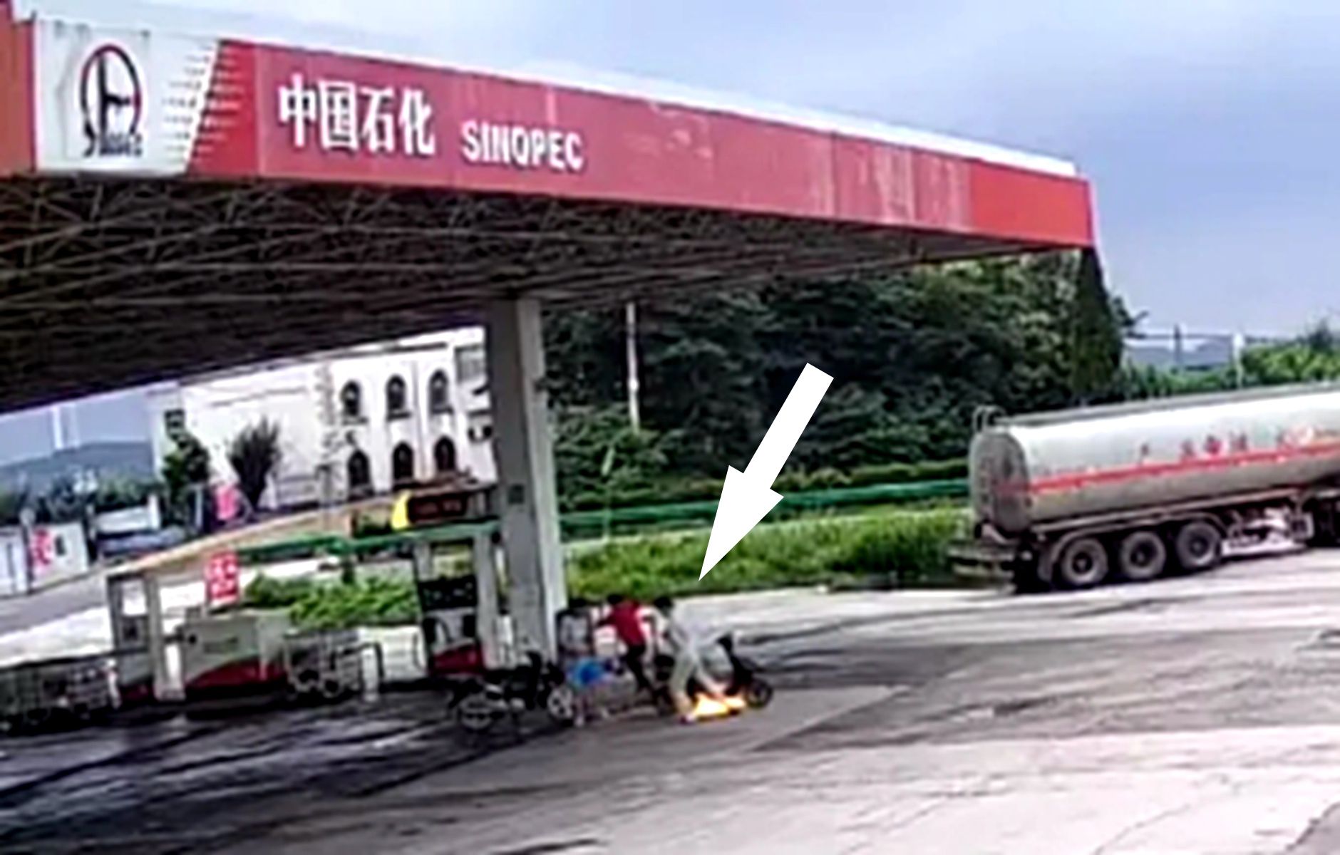 摩托车自燃 加油站员工“生死时速”快速灭火