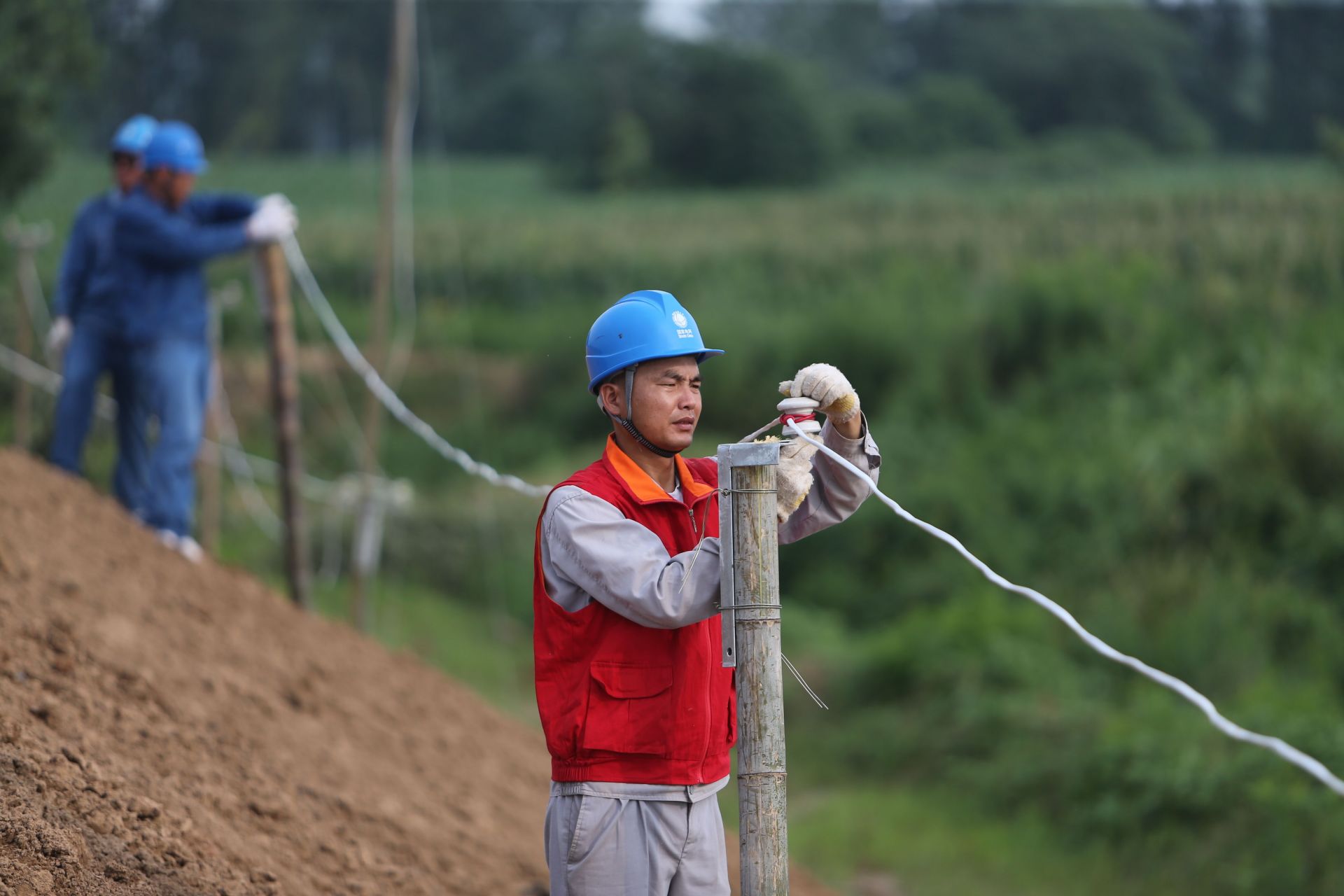 记者 何沛 通讯员 钱颉 牛路 文/图7月25日,在淮河支流的浍河固镇县湖沟镇魏庙段,国网安徽电力(蚌埠禹风)共产党员服务队固镇分队的队员们在大坝上争分夺秒地装照明灯,确保夜间巡堤安全。