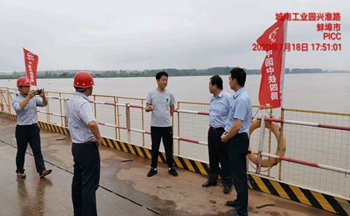 通过现场实地查勘水位情况,了解桥梁施工进程,并与五河县交通局局长及施工单位中铁四局项目负责人就防洪防灾工作实施交换意见。