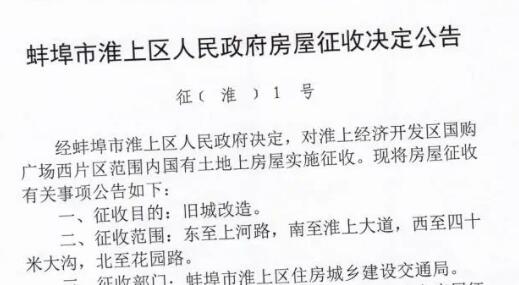 房屋征收公告!涉及蚌埠这些区域…