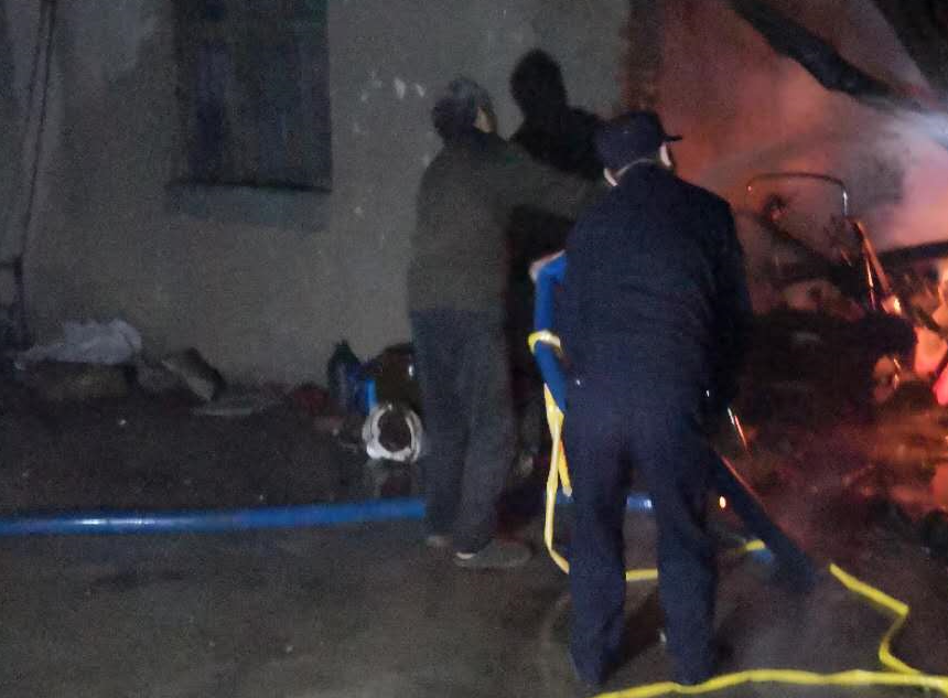 民警朱杰和辅警胥守猛抱起水管,冒着炙热的大火和车棚随时倒塌的危险,靠近车棚进行喷水,在随后赶来的县消防大队的帮助下,最终合力将大火扑灭。