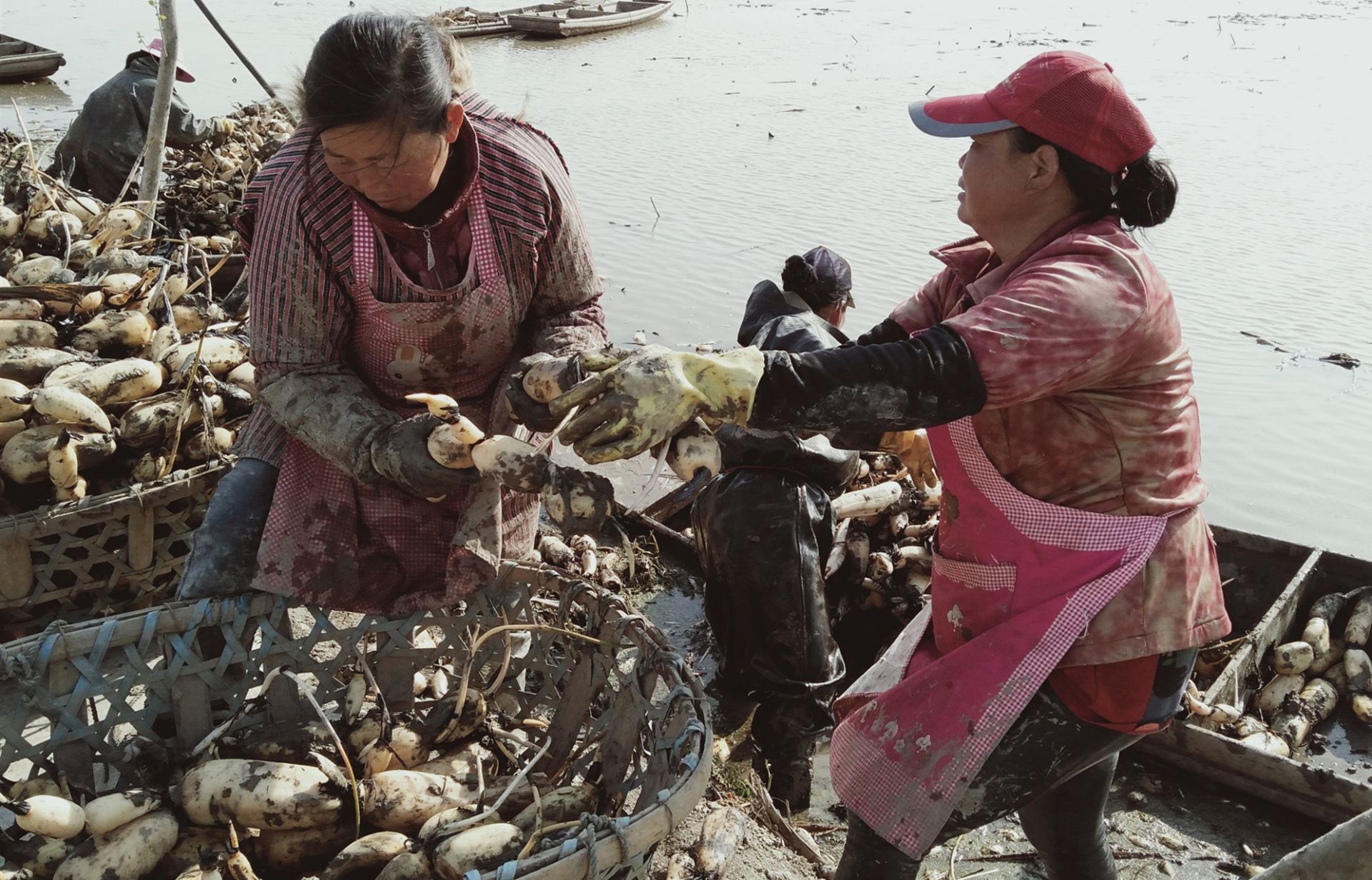 图为常坟镇莲藕产业合作社农户正移栽莲藕,全镇莲藕的种植面积由去年的3000亩增加到现在的10000多亩。