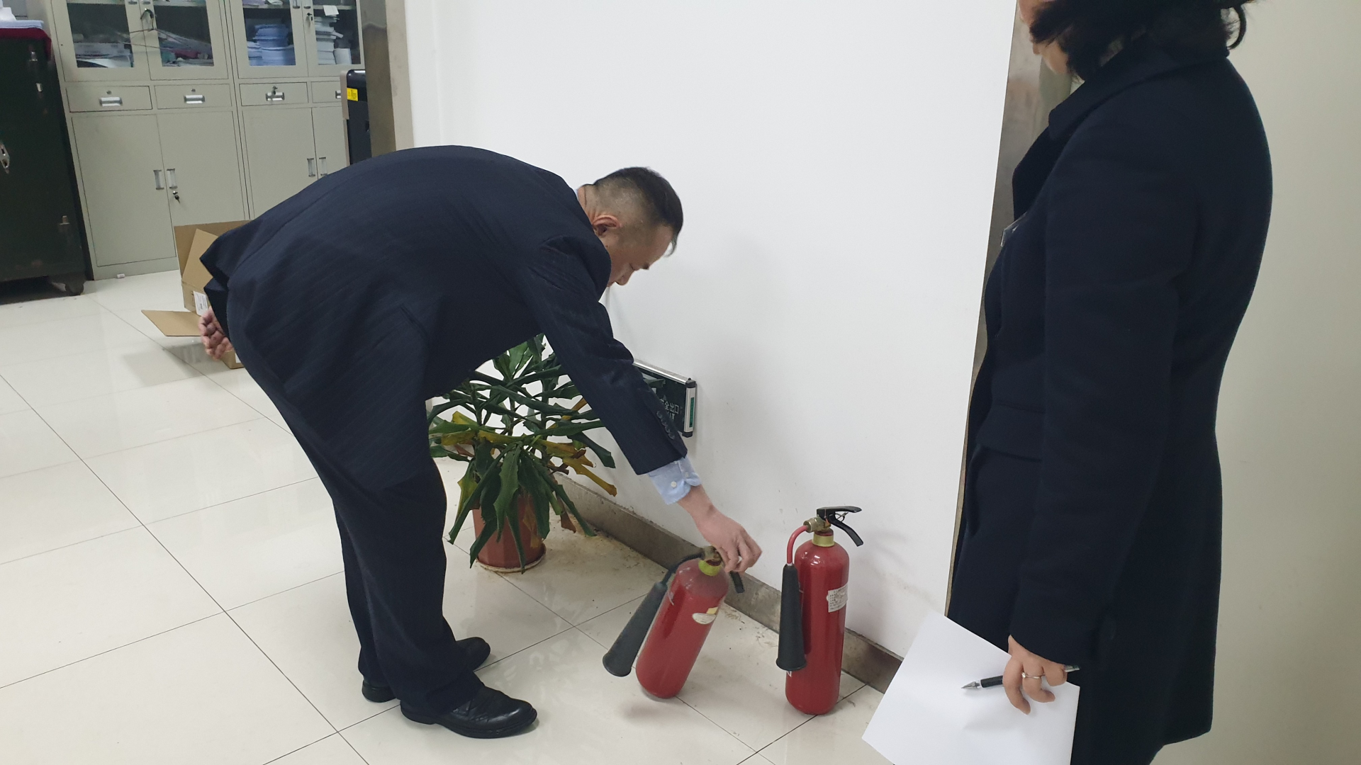 按照消防逃生演练方案,在三楼楼道进行了模拟实验室发生火灾时消防逃生演练,并开展了现场火灾扑救演练。