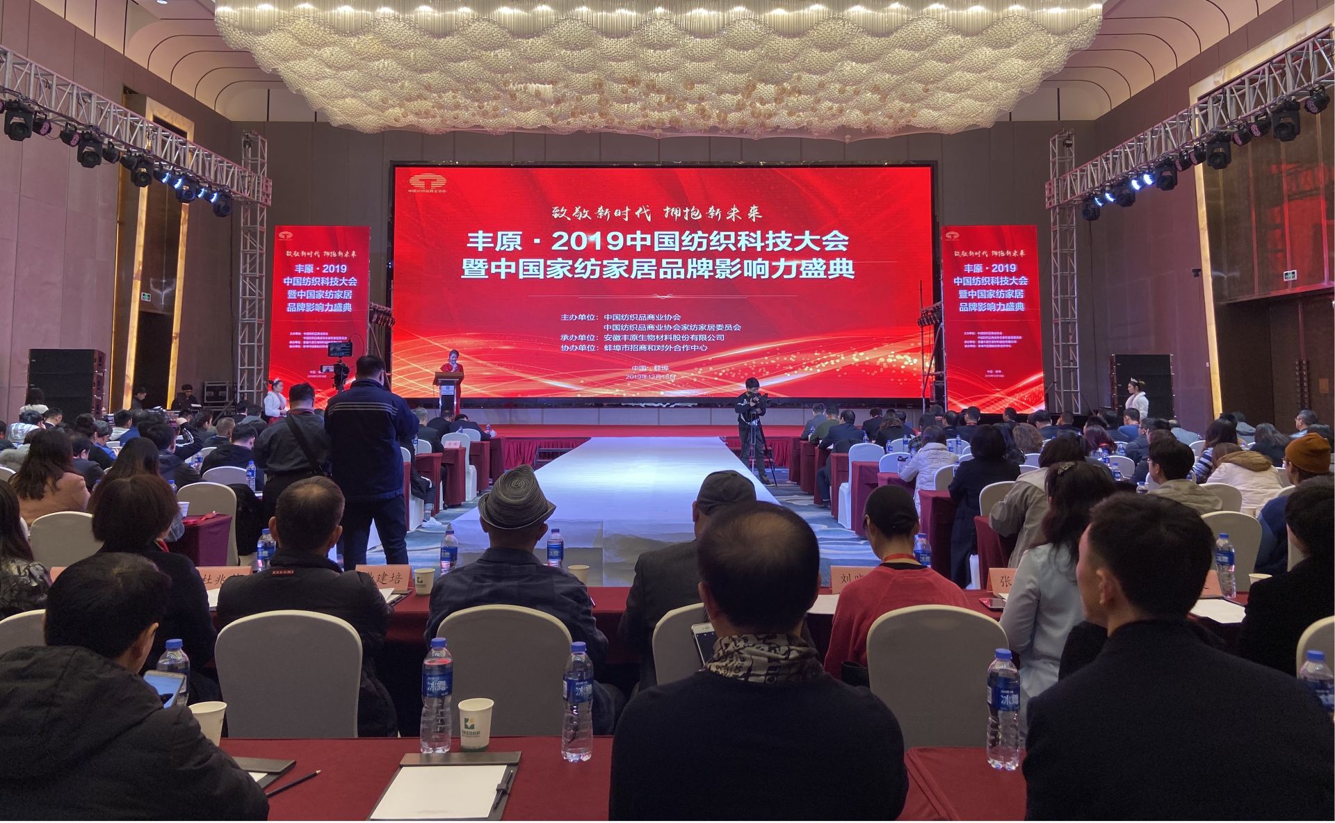 由中国纺织品商业协会、中国纺织品商业协会家纺家居委员会主办、安徽省蚌埠市招商和对外合作中心协办、安徽丰原生物材料股份有限公司承办的2019中国纺织科技大会暨中国家纺家居品牌影响力盛典于12月18日在安徽蚌埠举行。