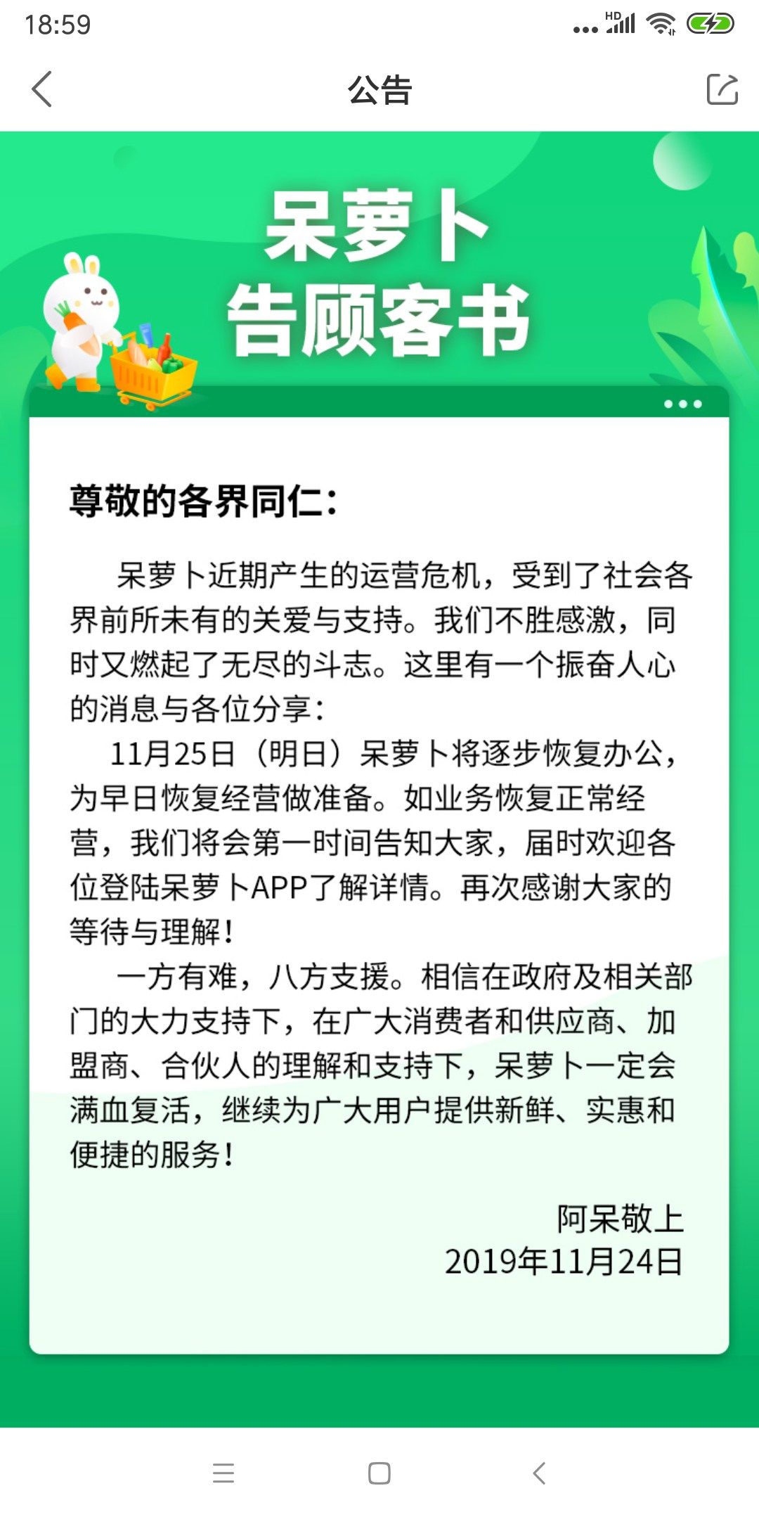 “呆萝卜”门店仍未恢复营业 企业公关人员说得好听