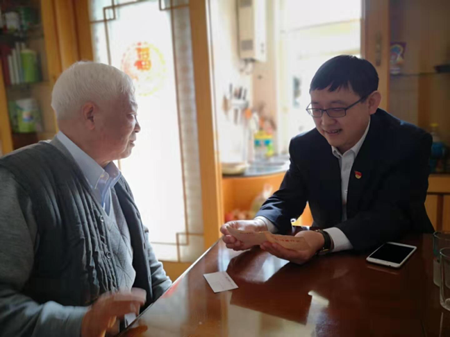 2019年11月15日,在蚌埠一栋居民楼内,年龄已达80多岁的徐克林老先生连声向赶来的工商银行蚌埠分行办公室服务负责人陈东和烟墩孜支行行长李云忠道谢,“真是太感谢了,你们工作这么忙,还特意赶过来,辛苦了……” 2019年11月15日,在蚌埠一栋居民...