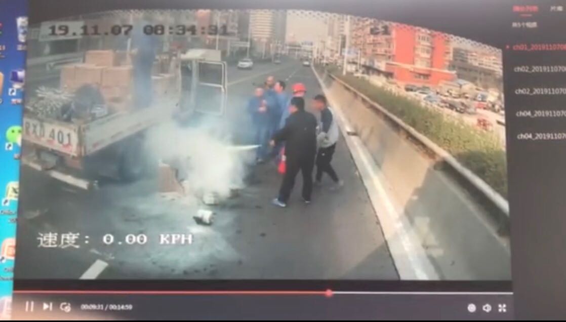 公交车驾驶员及时相助将火扑灭